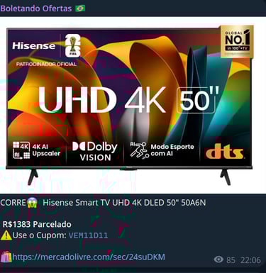 Receba as melhores promoções direto no WhatsApp e Telegram, de forma simples e rápida. ⬆️ Acesse agora